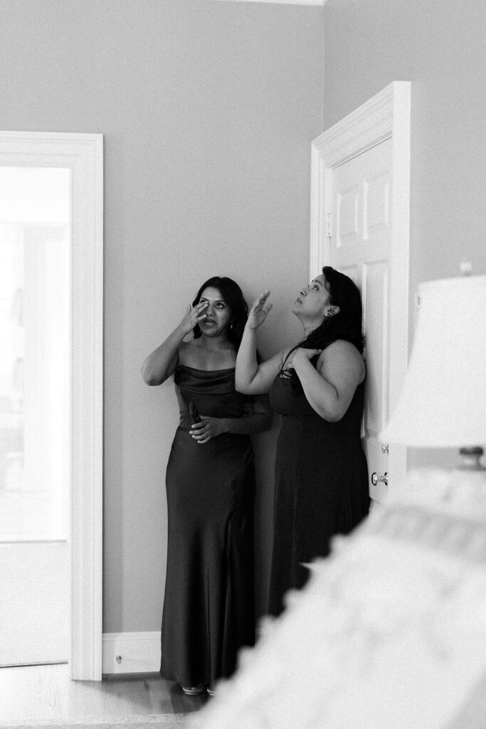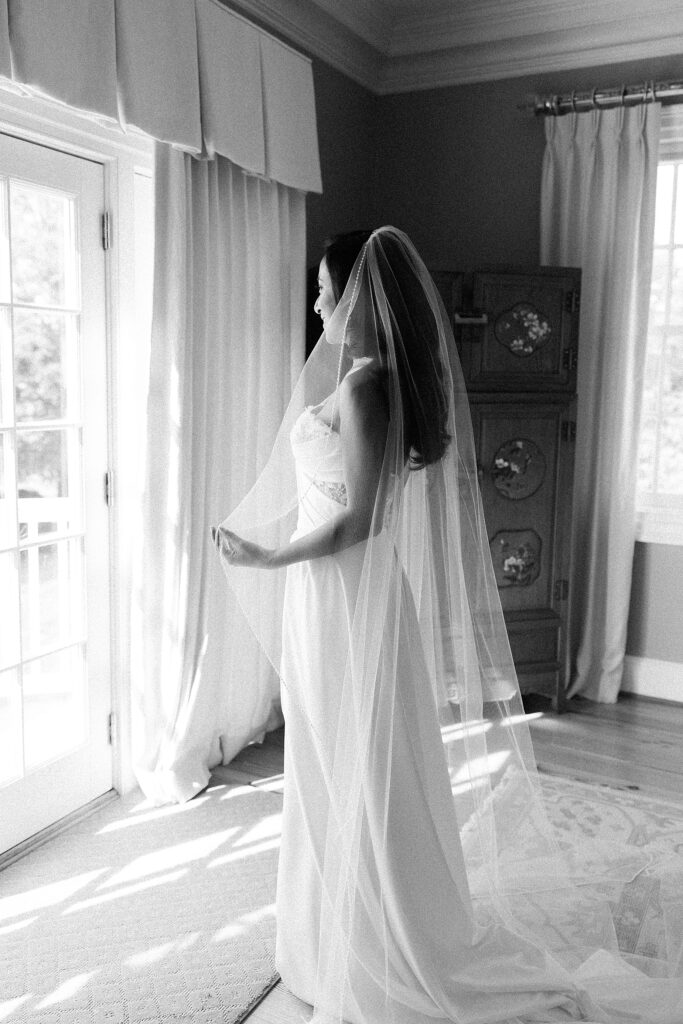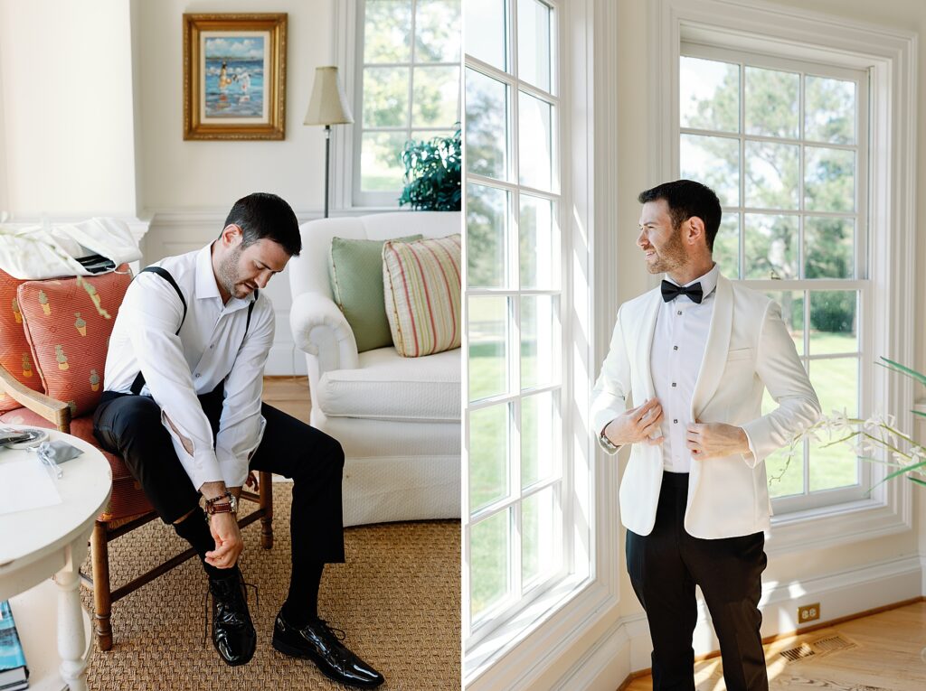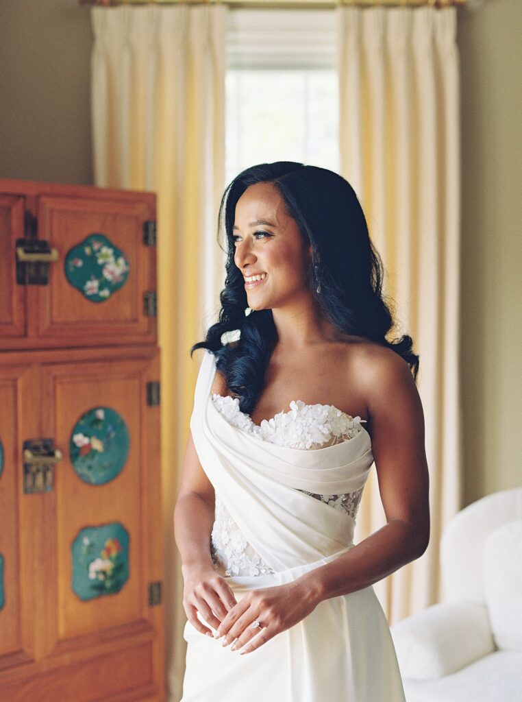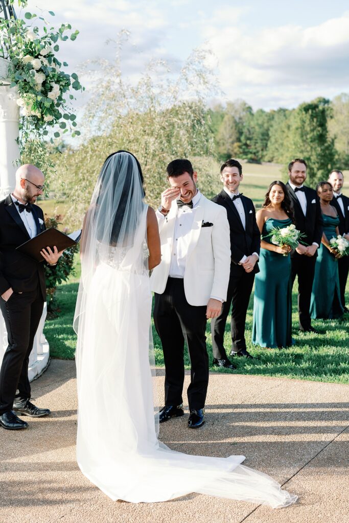 From the moment the bride’s laughter echoed through the getting-ready suite, it was clear this would be a day to remember. Every detail—bridesmaid gowns in deep forest green, lush ivory florals, and her silk robe—felt elevated yet natural. As a Charlottesville fine art wedding photographer, I love capturing weddings that balance refined design with real emotion, and this one delivered in every frame.