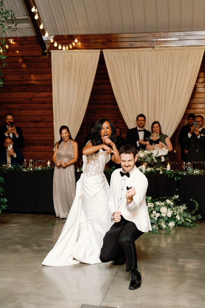 And then came the moment no one saw coming—their self-choreographed first dance to “I Want It That Way” by the Backstreet Boys. It started slow and romantic… until the beat dropped. Suddenly, the groom hit a perfect boy-band spin, the bride nailed the air-guitar move, and the crowd absolutely lost it. Guests cheered, sang along, and wiped away tears of laughter. It was ridiculous and perfect—pure them.