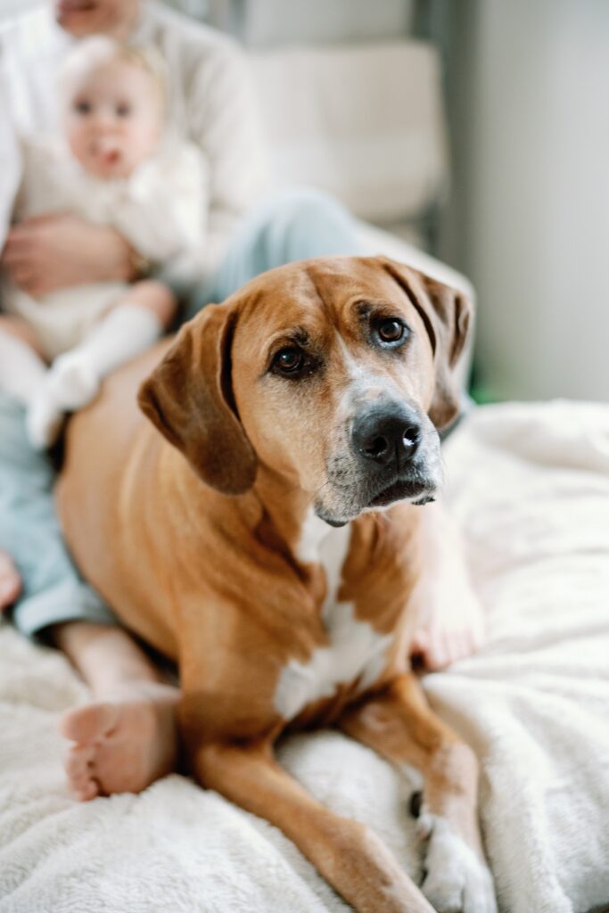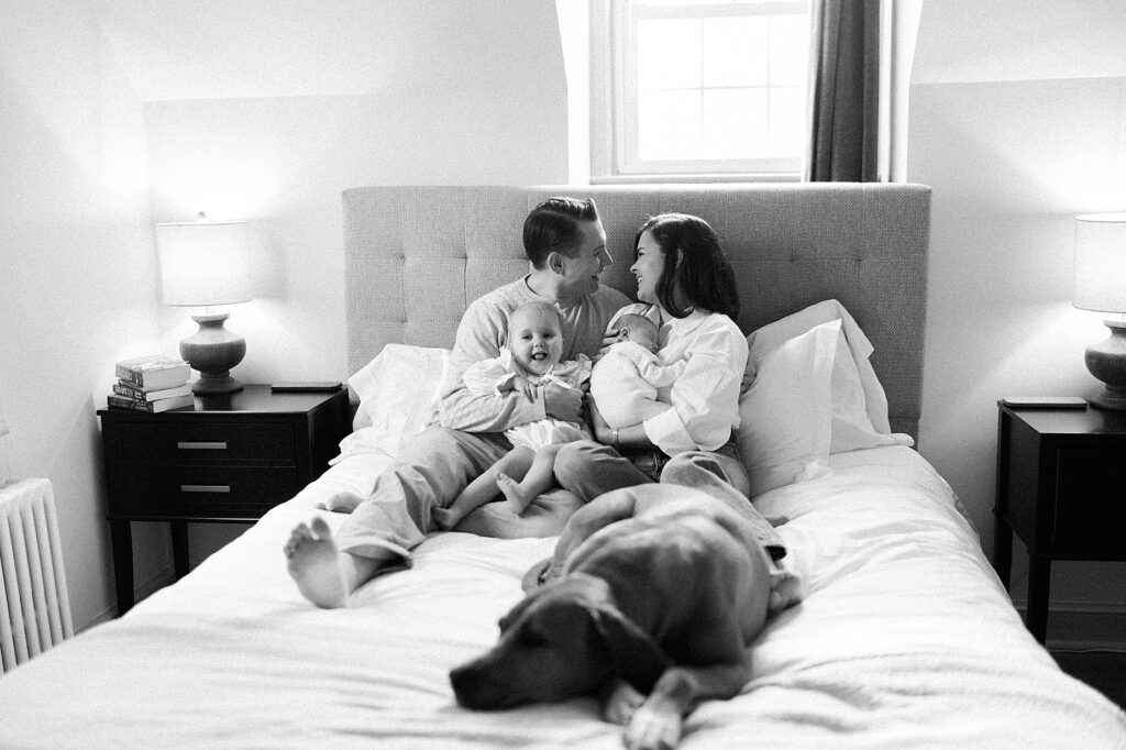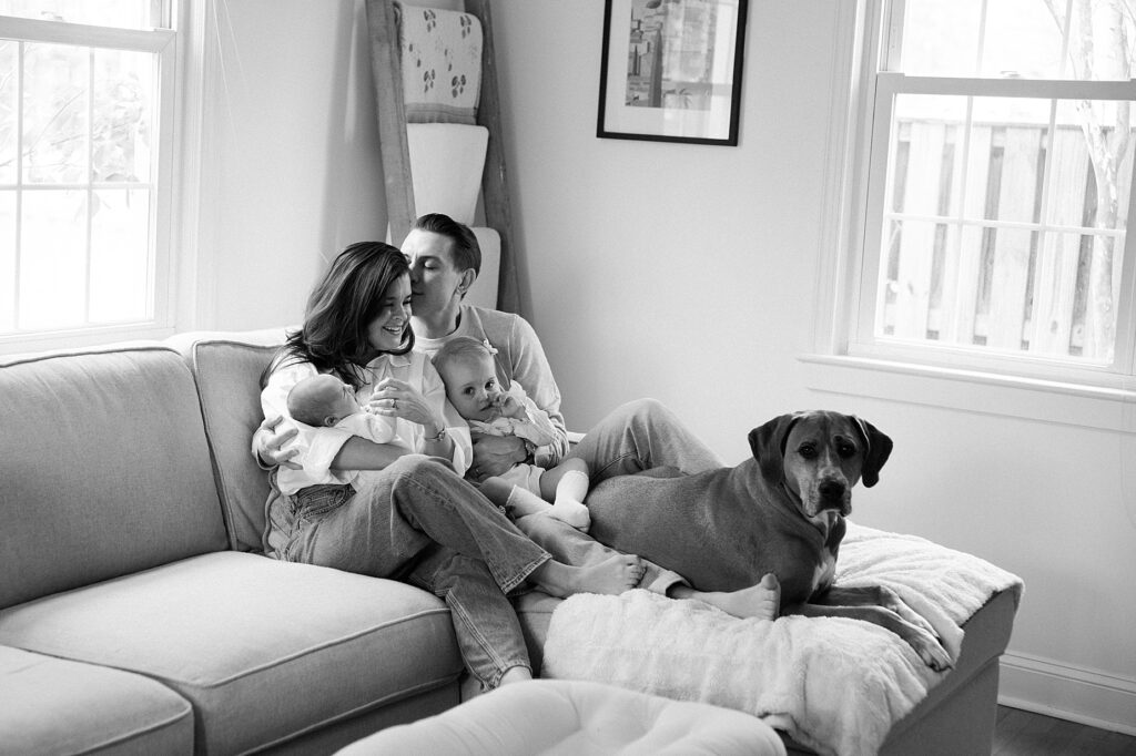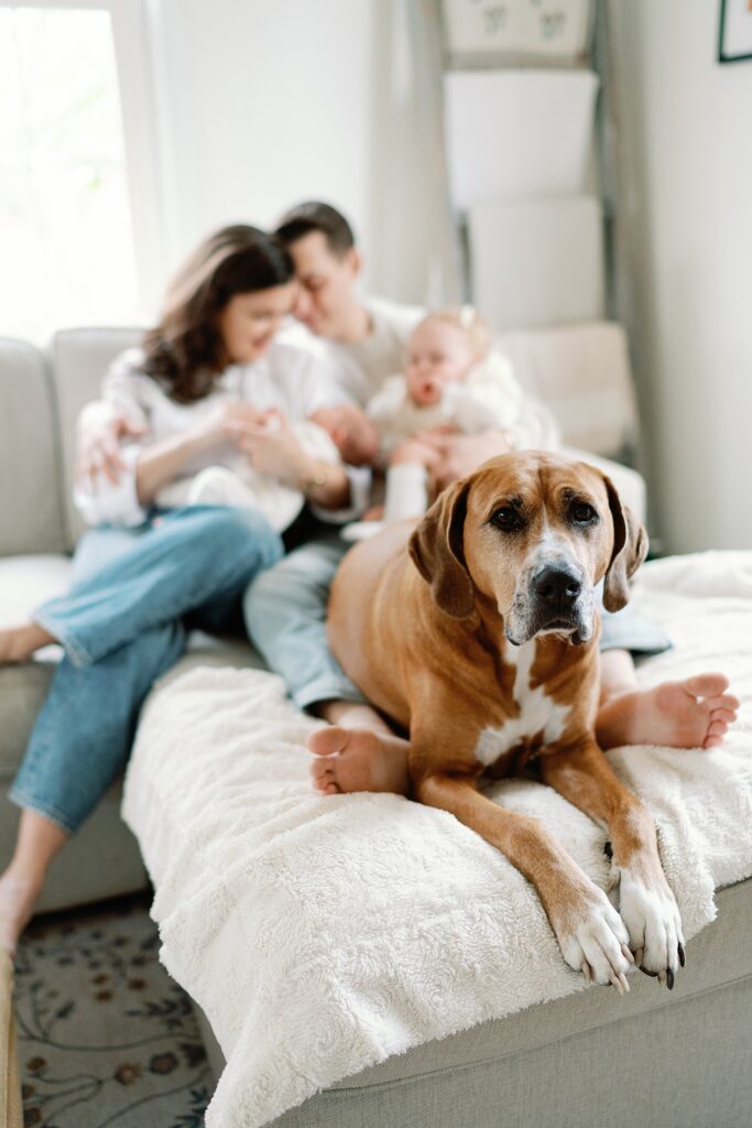 Photographing families in their own home allows for a more relaxed experience, especially with young children. This Arlington, Virginia home offered a bright, neutral palette that complemented a fine art aesthetic—clean lines, soft textures, and light colors that kept the focus on emotion and connection. Even the family’s devoted dog played an important role, staying close and watchful, adding warmth and personality to the story.