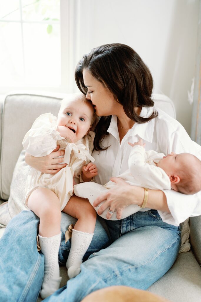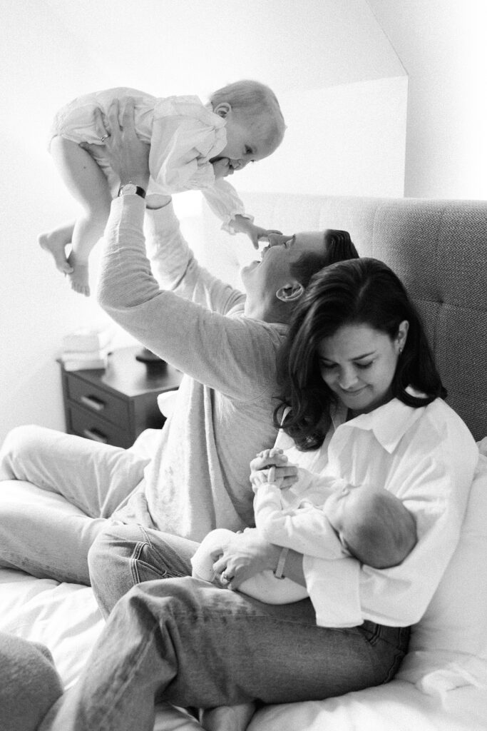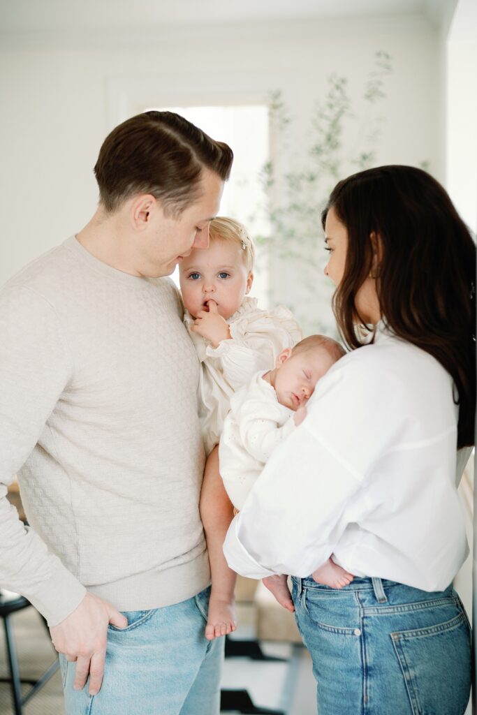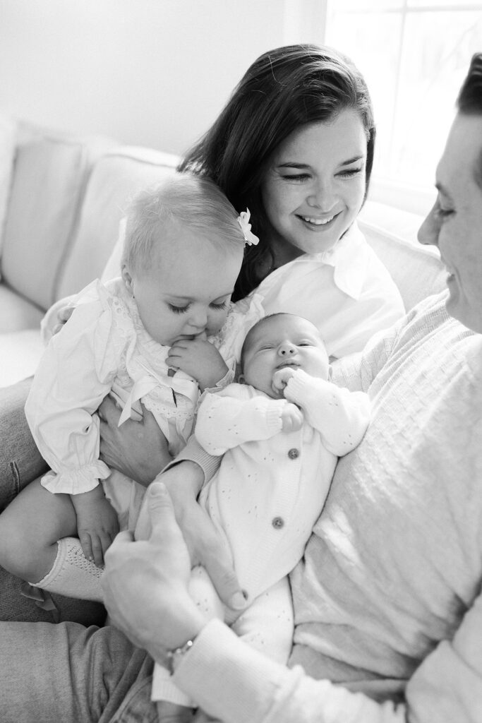 These lifestyle family portraits in Arlington, VA were a beautiful celebration of life at home—welcoming a new baby while honoring the rhythm of a growing family. With a newborn and a curious 18-month-old, this session focused on authentic, lifestyle family portraits that felt calm, connected, and timeless. Rather than posed perfection, the goal was to document genuine moments: quiet snuggles on the couch, soft light pouring through windows, tiny details, and the subtle interactions that tell the real story of early parenthood.